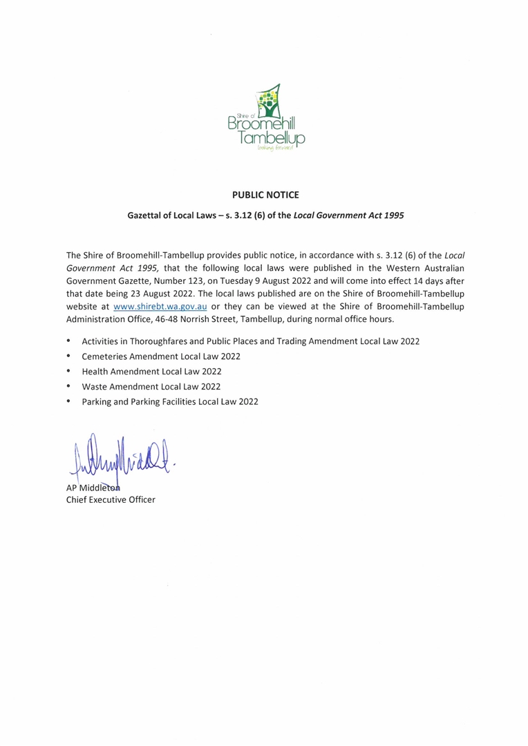 Activities in Thoroughfares and Public Places and Trading Amendment Local Law 2022